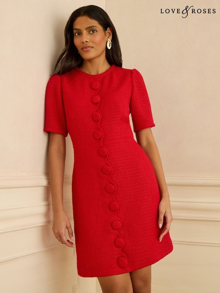 Love & Roses Boucle Button Front Mini Dress