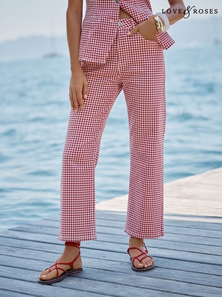 Rot, Vichy - Love & Roses Gerades Bein Cropped Jeans
