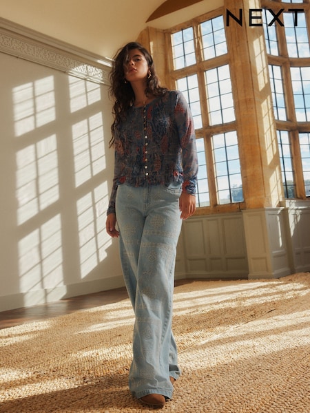 Mittelblau - National Trust x Next Cross Stitch Embroidery Leg Jeans