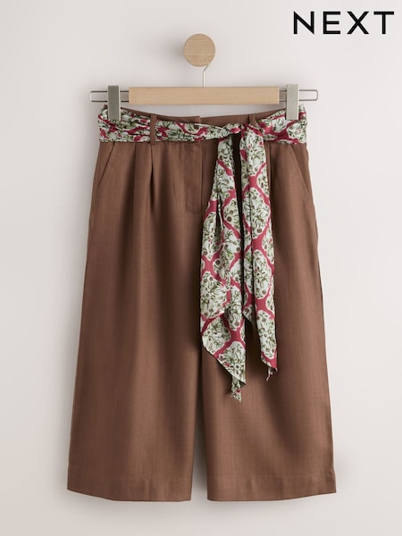 Schokoladenbraun - Jeansshorts mit Schal-Gürtel