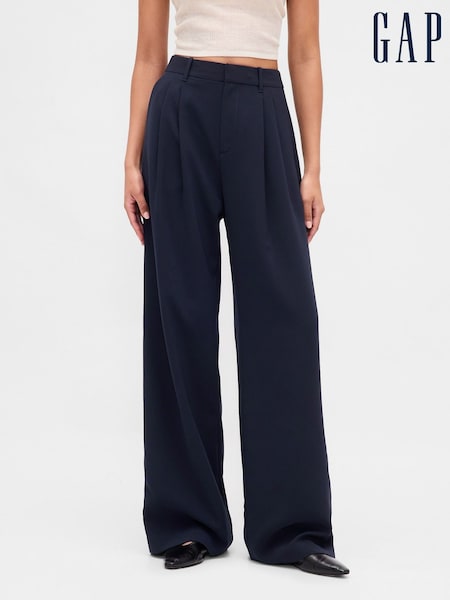 Marineblau/blau - Gap 365 Niedrig geschnittene Hosen mit Falten und weitem Bein
