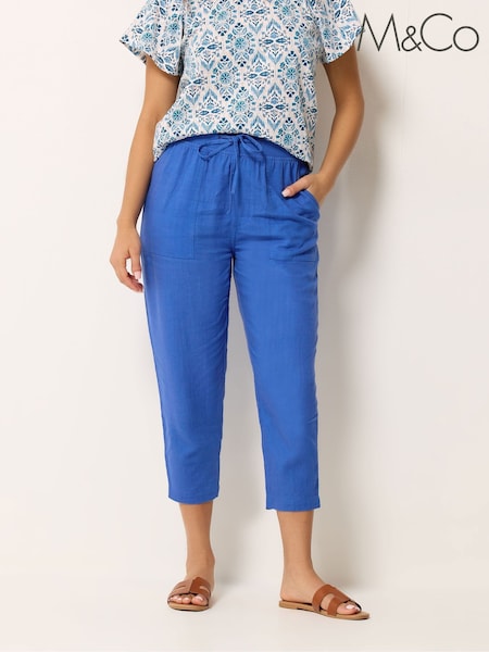 Blau - M&Co Petite Linen Blend Cropped Trousers
