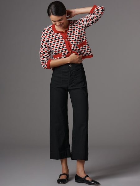Schwarz - Anthropologie Maeve The Colette Cropped-Leinenhose mit weitem Bein: Leinenausgabe