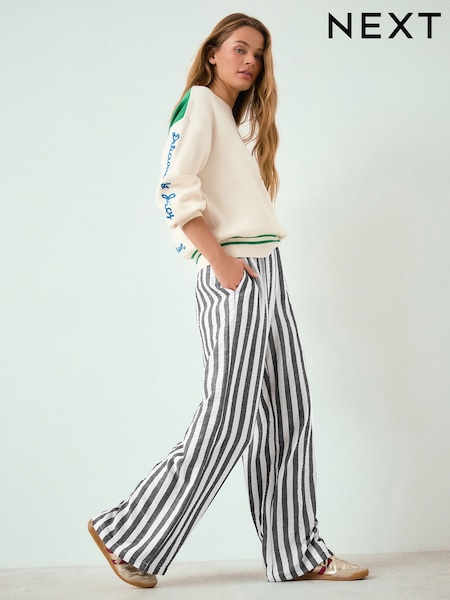 Grau/Weißer Streifen - Pull On Wide Leg Trousers with Linen