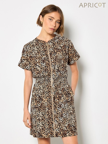 Braun - Apricot Leopard Print Zip-Down Mini Dress