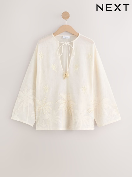 Cream - Oberteil mit gehäkeltem Palmendetail und weiten Ärmeln