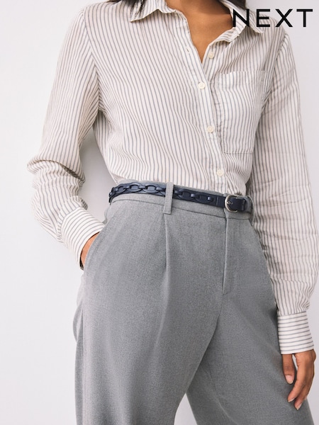 Marineblau/blau - Schmaler PU-Gürtel mit Kettendetails