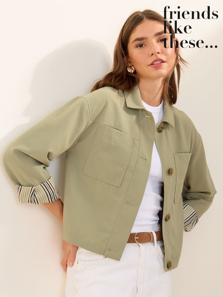 Friends Like These Linen Look Boxy Jacket With Stripe Lining