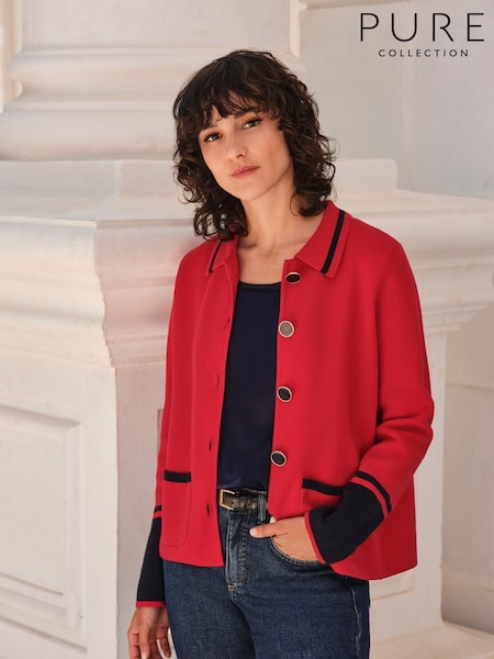 Pure Collection Blaue Baumwoll-WollBlend Milano-Jacke mit Knopfleiste