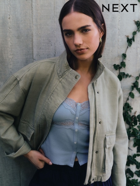 Khakigrün - Funnel Neck Cotton Utility Jacket