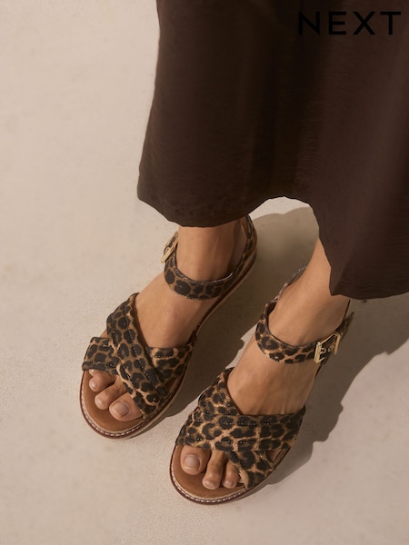 Leopard - Jones Bootmaker Natural Rosanna Schuhe mit Keilabsätzen und Fersenriemen