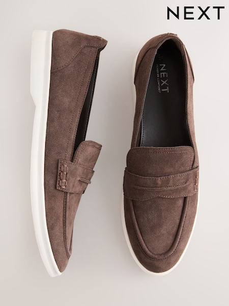 Schokoladenbraun - Forever Comfort Wildleder-Loafer mit weißer Sohle