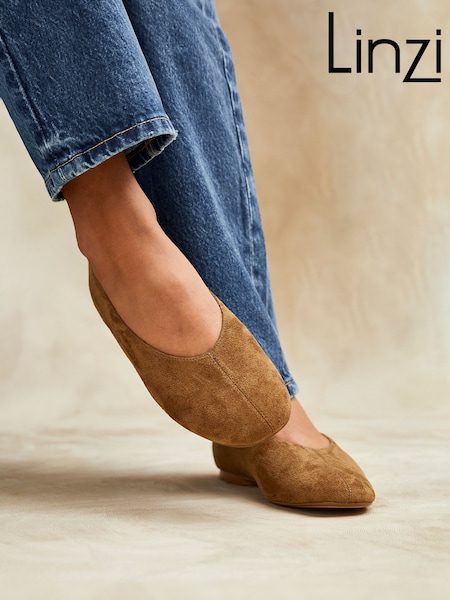 Taupefarben - Linzi Structure Quadratzeh-Ballett-Flats mit Decknaht