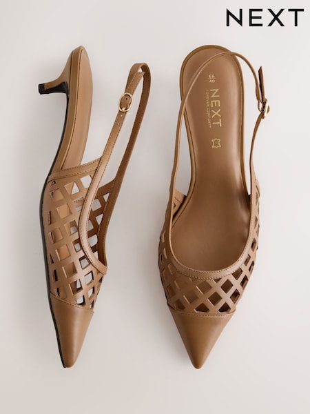 Hellbraun - Forever Comfort® Leder-Slingbacks mit Laser-Cut