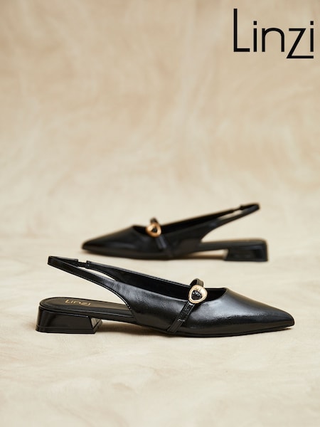 Schwarz - Linzi Align Spitze Zehenpartie Ballet Flats mit Schnallendetail