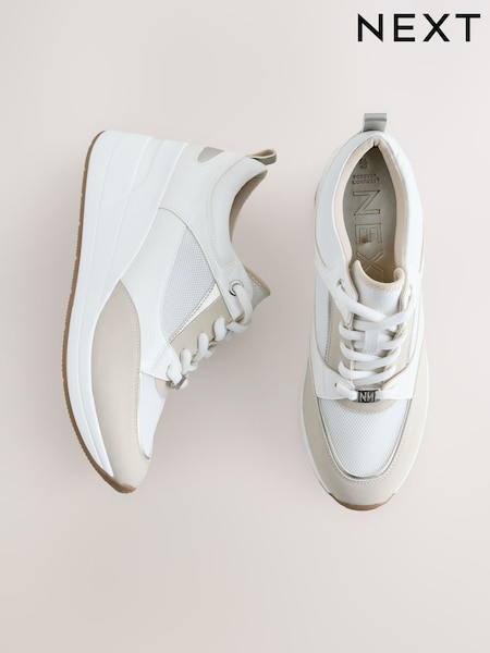 Weiß - Signature – Leder-Sneaker zum Hineinschlüpfen mit dicker Keilabsatz-Plateausohle