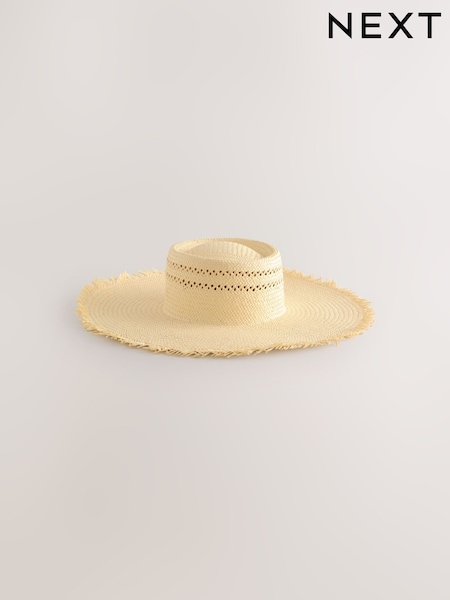 Natur - Floppy-Hut aus Raffia mit ausgefranster Kante