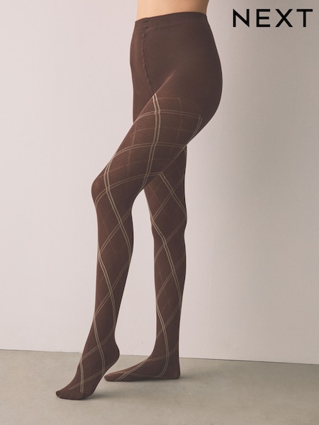Schokoladenbraun - Strumpfhosen mit warmem Griff und thermischem, kariertem Muster