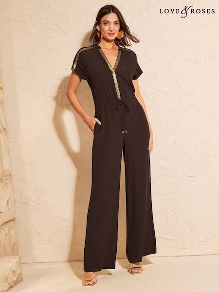 Love & Roses Jumpsuit mit Paillettenbesatz und V-Ausschnitt
