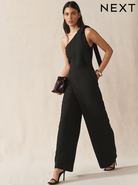 Schwarz - Schleifen-Schulter Wide-Leg Occasion-Jumpsuit