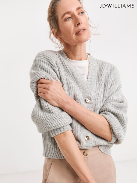 Grau - JD Williams Gerippte Strickjacke mit V-Ausschnitt