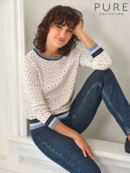 Pure Collection Cotton Wool Printed Spot Jumper