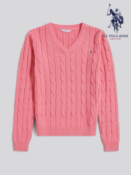 Bubblegum-Pink - U.S. Polo Assn – Pullover mit Zopfstrickmuster und V-Ausschnitt