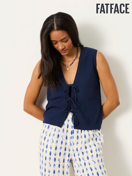 Marineblau - FatFace Fia Tie Front Knitted Vest