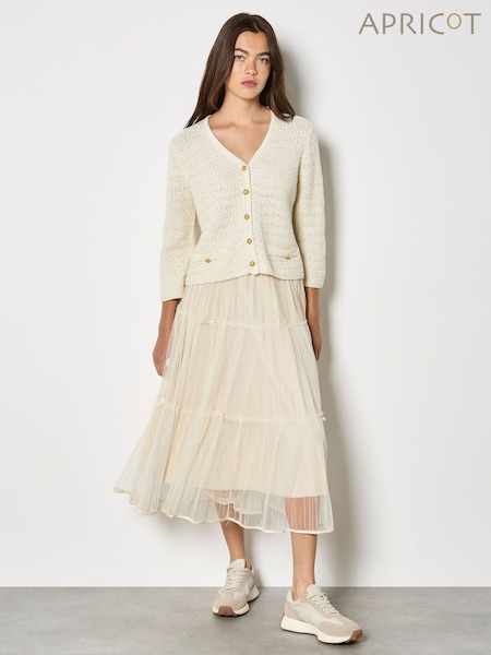 Raffya Lola bestickte Cream Strickjacke mit Bindung vorne