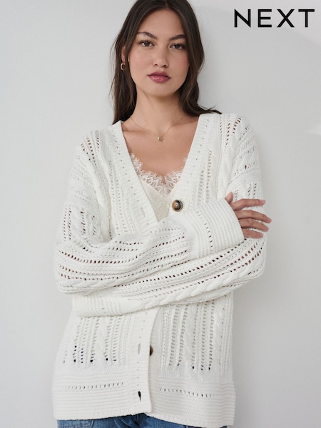 Weiß - Roman Bow Front Buttoned Strickjacke