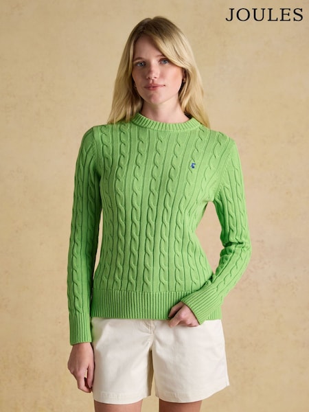 Grün - Joules Classic Crew Neck Cotton Cable Knit Jumper