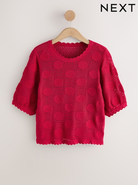 Rot gepunktet - Häkel-T-Shirt mit Rundhalsausschnitt