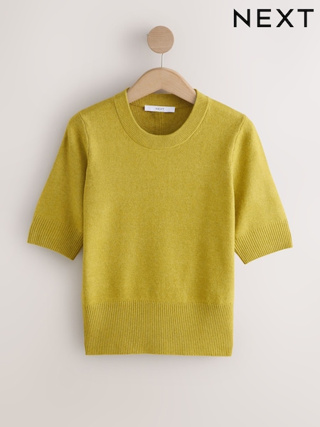Zitronengelb - Superweiches Strickoberteil mit kurzen Ärmeln