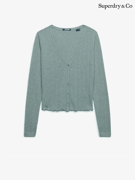 Grün - Superdry Athletic Essential Pointelle-Strickjacke