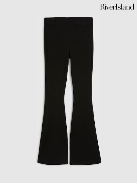 River Island Schwarze Leggings mit hohem Bund, Rippstruktur und ausgestelltem Bein