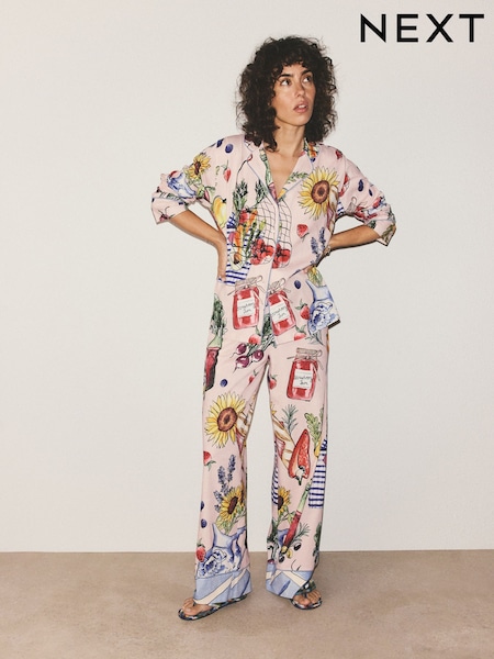 Their Nibs Lobster Love Klassisches Langes Pyjama-Set aus Satin