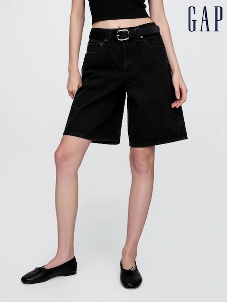 Schwarz - Gap 11 Inch Mid Rise Longline Jort Denim Shorts