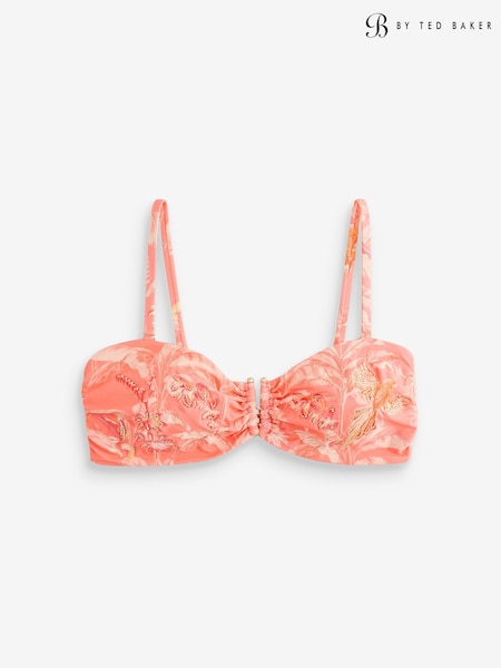 B by Ted Baker Coral Pink Palm Beaded Bandeau Bikini Top With Removable Straps