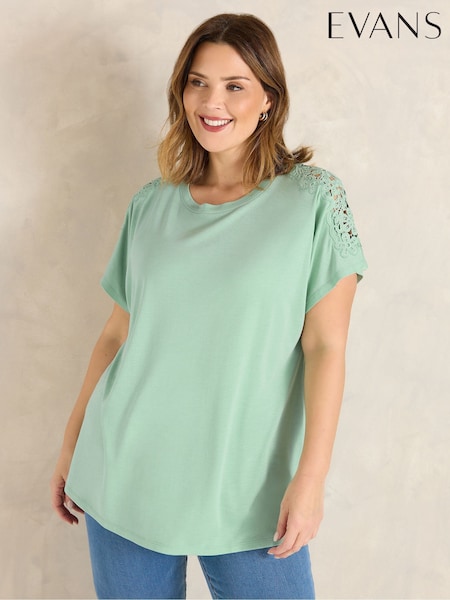 Grün - Evans – T-Shirt mit gehäkelten Schultern