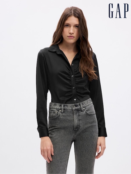 Schwarz - Gap Gerafftes Langärmeliges Satinhemd