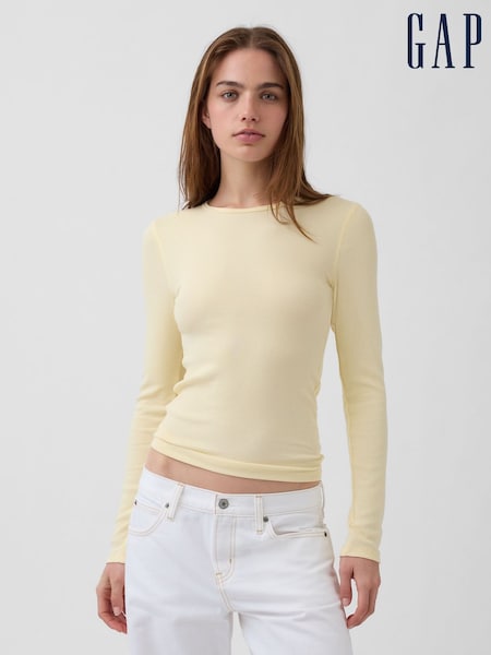 Gelb - Gap Modernes Rippen-Langarm-T-Shirt