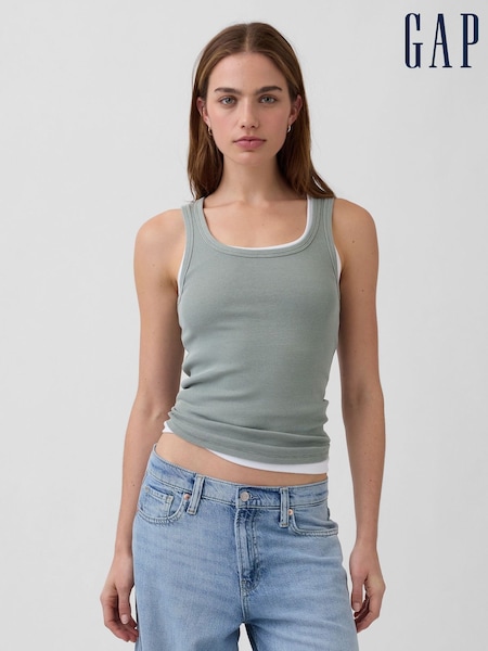 Grün - Gap Geripptes, hoch geschlossenes Trägertop mit Racerback