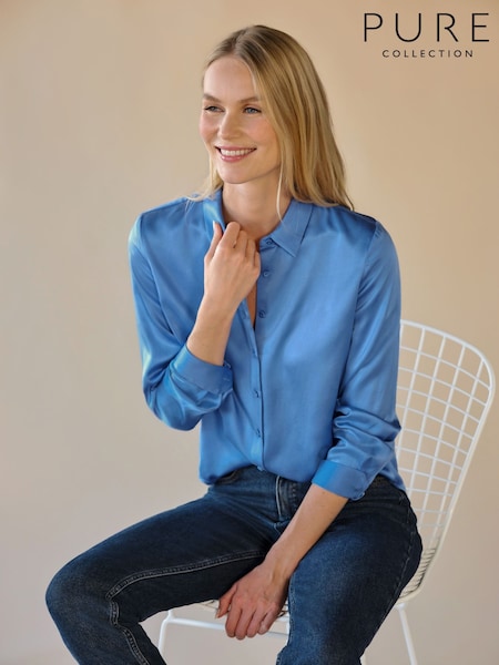 Blau - Pure Collection Hemd aus gewaschener Seide mit lockerer Passform