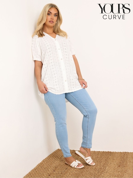 Yours Curve Broderie Anglaise Puff Sleeve Blouse