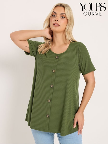 Grün - Yours Curve Button Front Swing T-Shirt