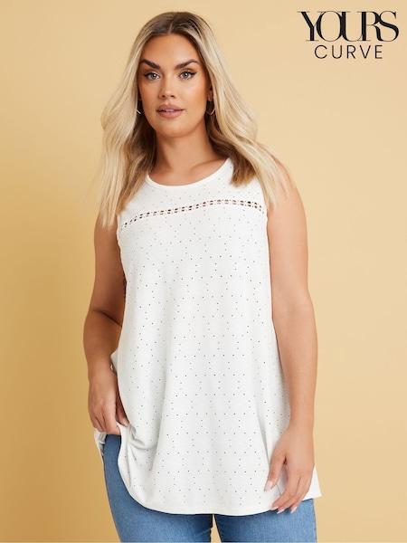 Yours Curve Floral Broderie Anglaise Trägershirt