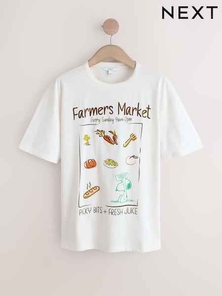 Ecru, Weiß - Snoopy Licence Graphic Short Sleeve T-Shirt