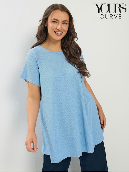 Blau - Yours Curve Shimmer Ribbed Swing T-Shirt