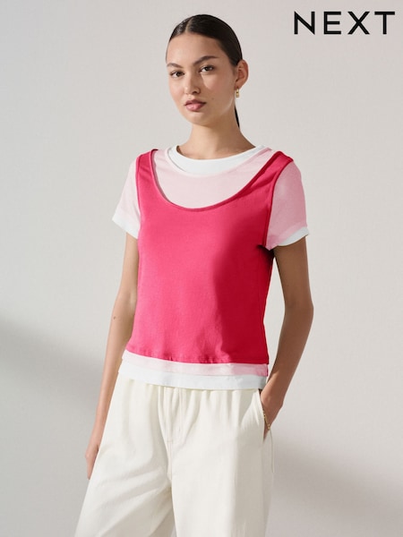 Rosa - Mock Layer Short Sleeve Crew Neck T-Shirt
