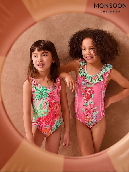 Monsoon – Badeanzug aus Jacquardstoff mit floralem Muster und Zierausschnitt